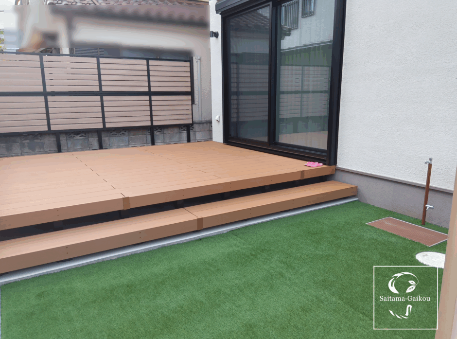 2. プライバシーと開放感の両立: 隣家からの視線を優しく遮るため、温かみのある木目調の目隠しフェンスを設置。完全に閉ざすのではなく、圧迫感が出ない高さを一緒に考え、ご家族がリラックスできるプライベート空間を実現しました。