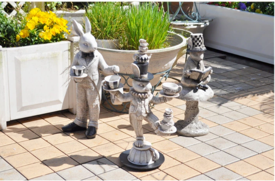 庭や花壇に置物を加えると、四季折々の花や緑を一層引き立て、空間全体に物語性が生まれます。